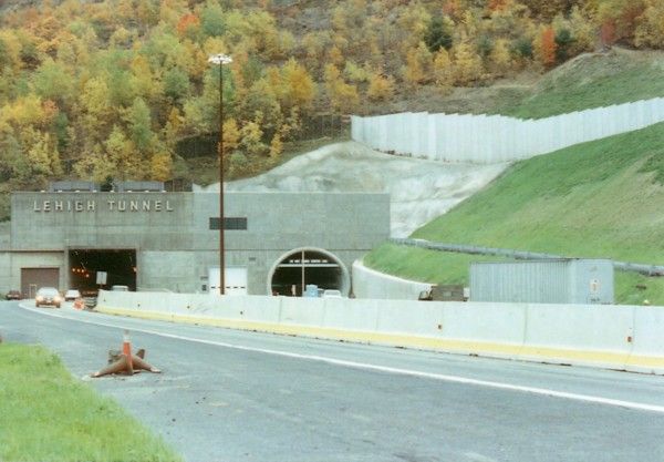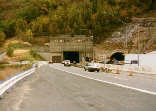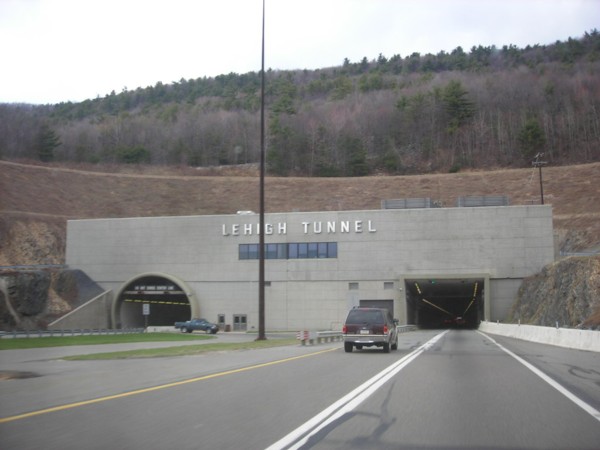 4,461 foot Lehigh Tunnel, a two lane tube through the Blue Mountain.