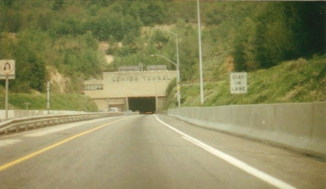 highway narrowed to enter the tunnel.