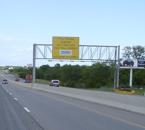 | Toll Plaza Advisory Sign on I-44 Eastbound; Stroud. | Jeff Kitsko; May 23, 2001 |