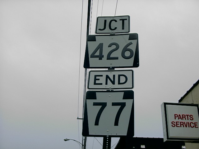 Here is the historical eastern terminus of PA 77 and current day southern terminus of PA 426 at PA 27 near Garland.