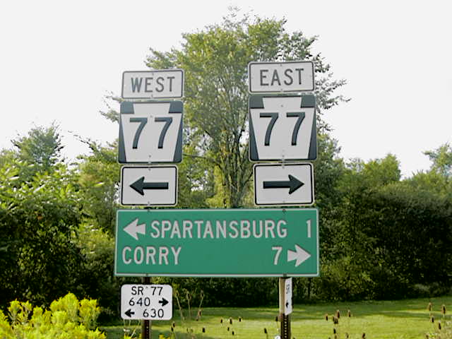 East PA 77 from this point to Corry was North PA 277. Fortunately, the historical routing of PA 77 is also shown at this intersection, as it is at PA 426 in Spring Creek. Below, David has a photo of one of what appears to be a homemade 'OLD ROUTE 77' sign. However, he notes that there are a number of similar signs noting Old Route 77 in this area.