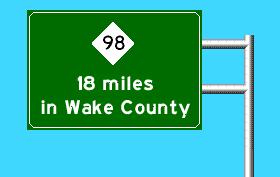 Originally, 98 just entered Wake County for a mile or two. It ran over today's NC 96 from the current 96-98 intersection north to Youngsville. At this time, 96 was NC 264. In late 1952/early '53, 264 was renumbered to 96, the original 98 from the 264-98 intersection north was also renumbered to 96, and 264 west to Wake Forest was renumbered to 98. 98 was extended to Durham, its current terminus, at this time also.