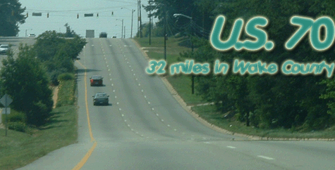 70 covers just about every sort of territory imaginable in Wake County -- from shopping malls to parkway-like stretches to large old houses (not to mention the old oak trees) to a typical eastern North Carolina landscape east of Garner. Now that I-540 has been completed, 70 has essentially been replaced as the main route from North Raleigh to points west, and to that end 70 is the only road in the county (especially inside 540) that has seen a net decrease in traffic over the past ten years. That said, the area around Crabtree Valley Mall and the Beltline is still a traffic nightmare, especially during peak shopping seasons.